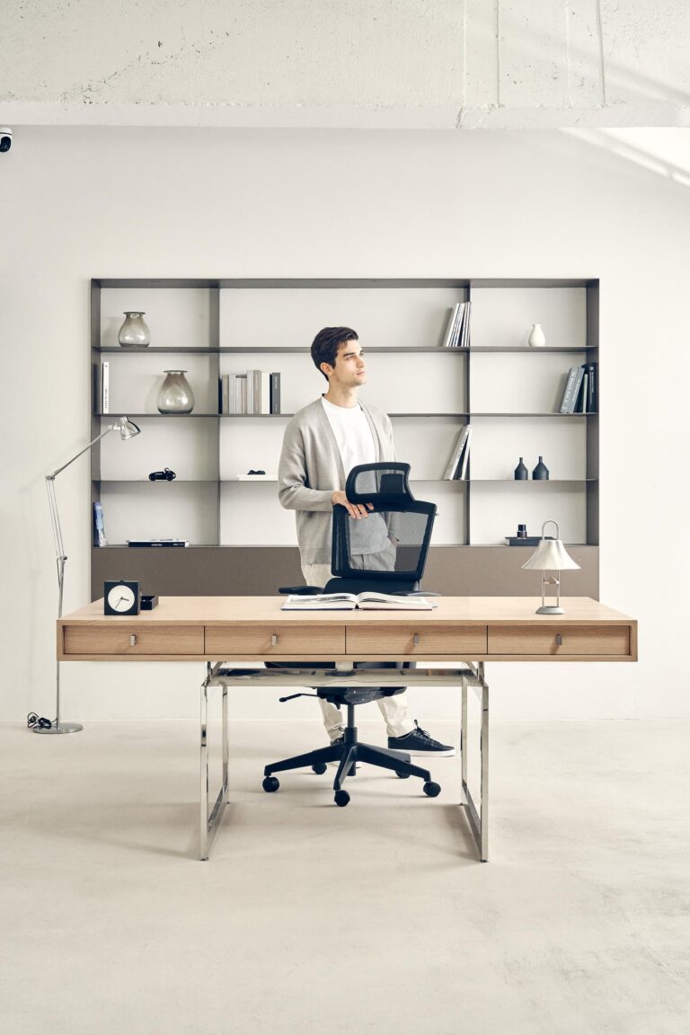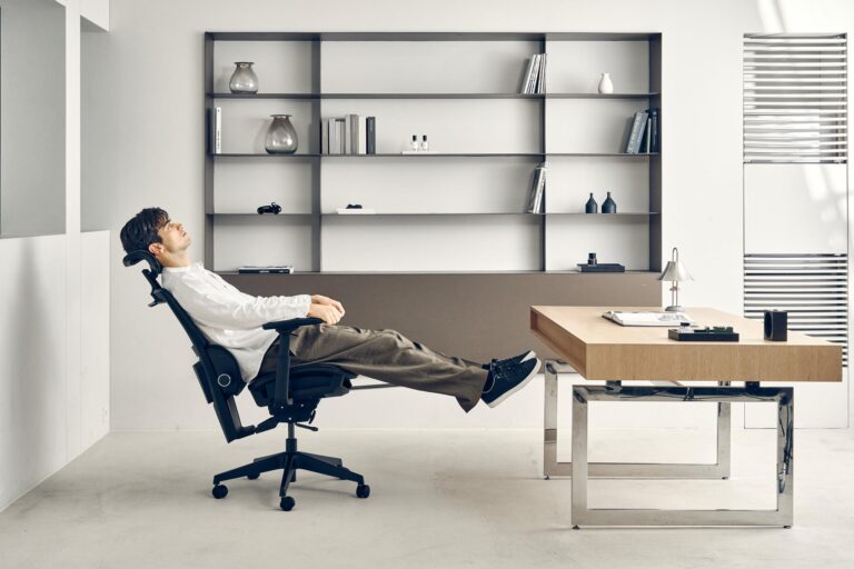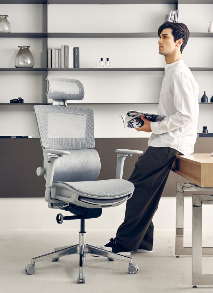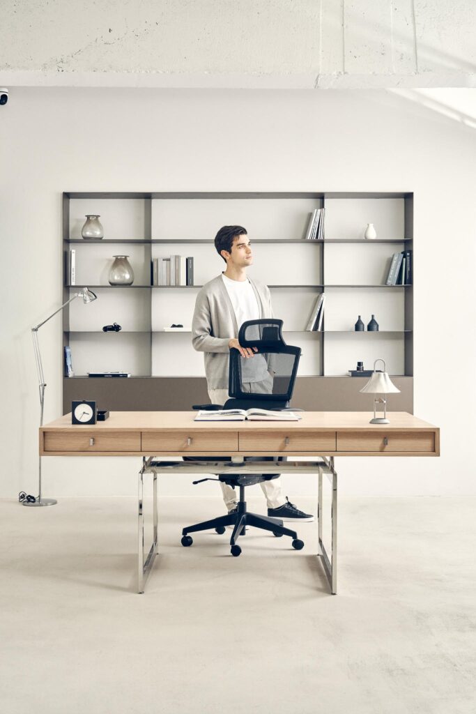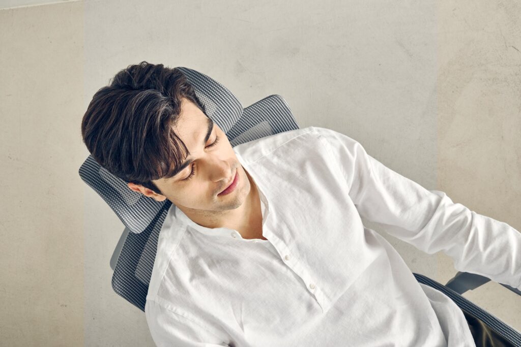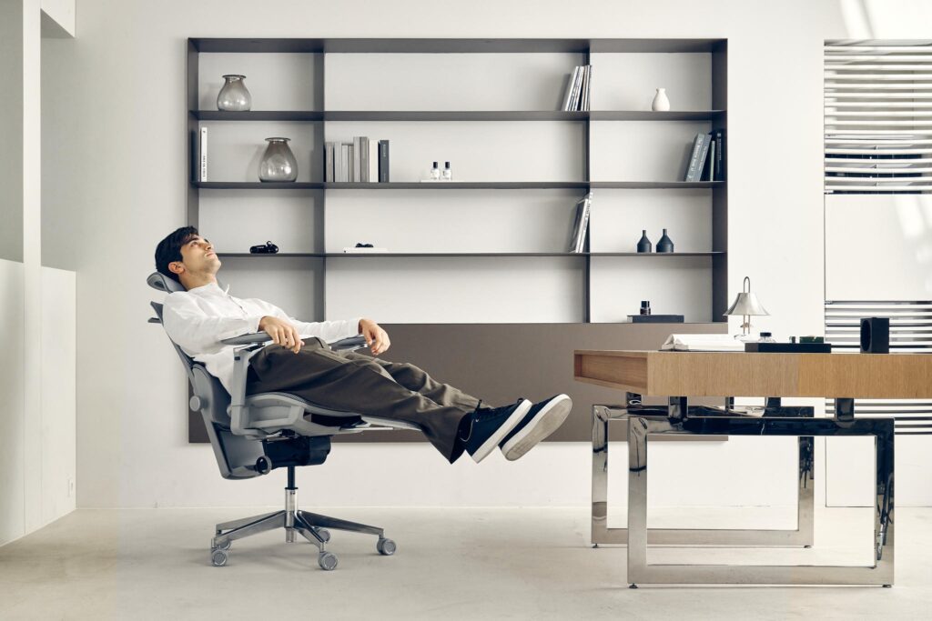 • Ergonomia na co dzień – cicha praca modułów, stabilna podstawa, wygodny zagłówek i wysuwany podnóżek pozwalają „przełączyć się” z trybu pracy na krótki relaks dosłownie jednym ruchem