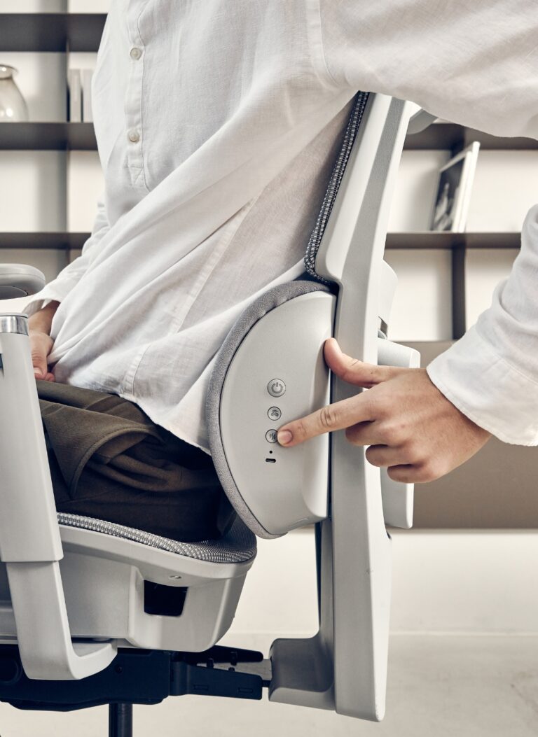 • Tak. Rewind PRO to ergonomiczne krzesło biurowe z wbudowanym masażem i podgrzewaniem odcinka lędźwiowego/pleców, zaprojektowane tak, by można było z nich korzystać w trakcie pracy przy biurku – bez odrywania się od zadań.