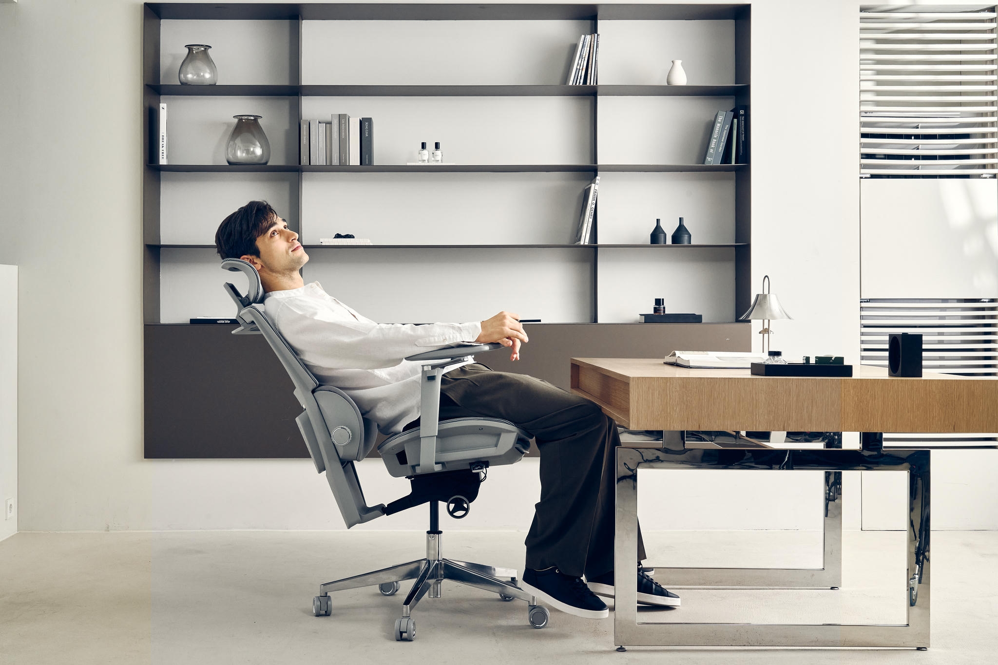 • Ergonomia na co dzień – cicha praca modułów, stabilna podstawa, wygodny zagłówek i wysuwany podnóżek pozwalają „przełączyć się” z trybu pracy na krótki relaks dosłownie jednym ruchem